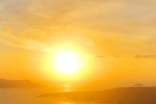 太陽終于脫離了,撞在了一座山上,陽光照得樹木金黃的,好像是山上堆滿了黃金似的,又像一個(gè)掉在山上的半個(gè)蘋果,太陽慢慢得變小,慢慢地躲進(jìn)了大山,似乎在和我們玩捉迷藏游戲。